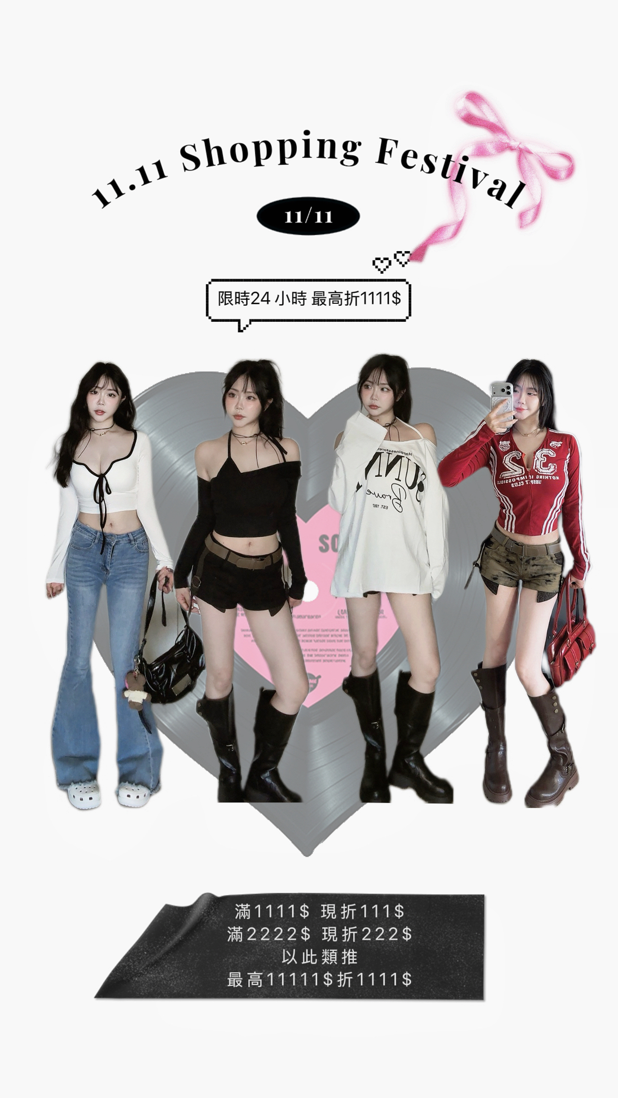 11/11單筆1111折111$ 2222折222$ ...以此類推買越多折越多!